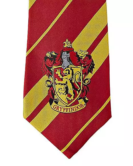 Put a leg-locker curse on any Slytherin bystander in the officially licensed Harry Potter Gryffindor Deluxe Tie! You’ll transfigure your look with this striped red and gold tie with a Gryffindor crest logo.