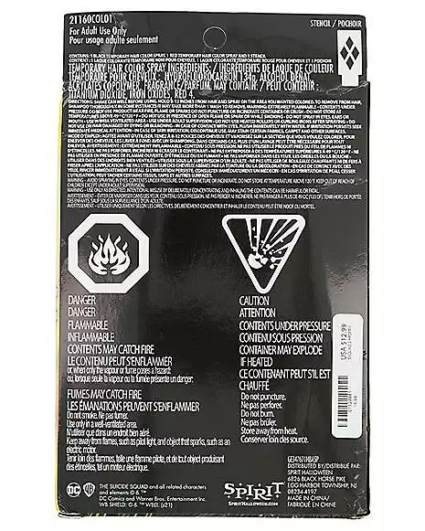 Hey, puddin’! Your hair looks fabulous! Transform into the wild and wonderful Harley Quinn with these temporary color hairsprays. You’ll love rocking vibrant red and black Suicide Squad-inspired hair for the day!