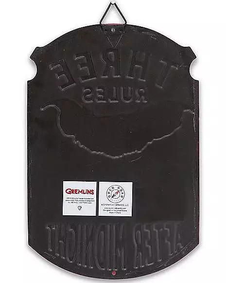 Show off your love for Gremlins when you hang this officially licensed Three Rules Sign in your home! Celebrate your favorite horror movie and make sure to always follow the rules. NEVER feed them after midnight!